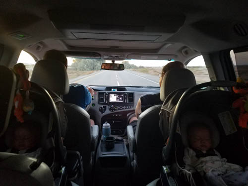 Well, after almost 9 hours in the car with four adults and two 4-month-olds, we made it to our first National Park – The Grand Canyon.  If we were to summarize this trip in one sentence it would be: “Nothing goes according to plan, but it’s fun anyway (and you’ll have plenty of laughing material for years to come)”.