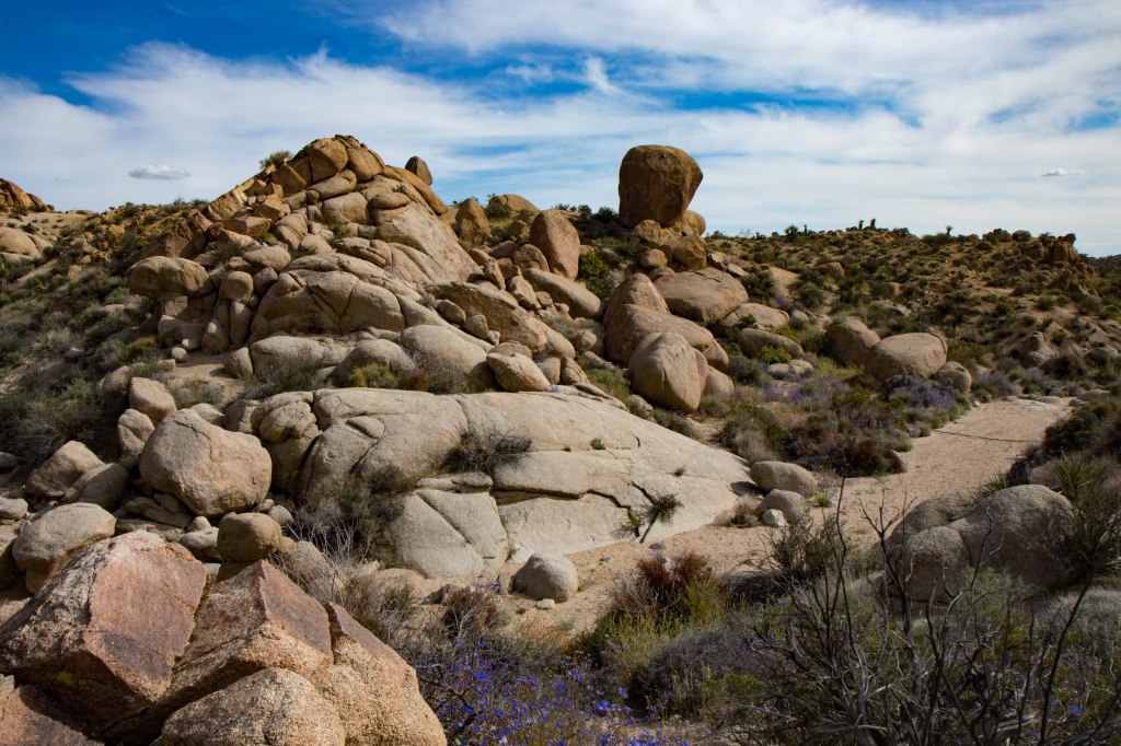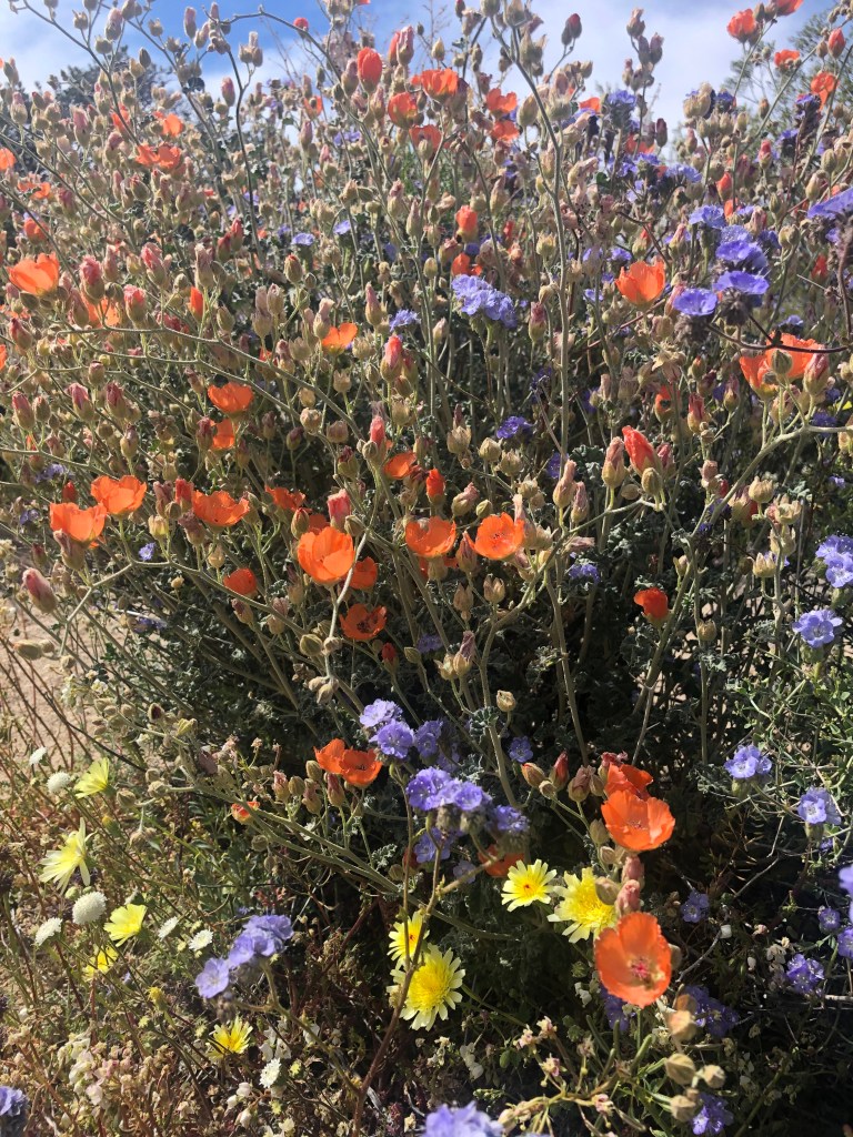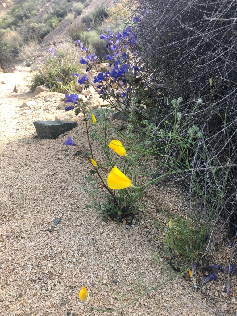 Our site was on the outside of a loop which meant it was a bit quieter and more scenic with no tents behind us. What was even better was that there were some trails right off the back of our site. Once we parked the car, we didn’t have to get in it again until we left. This was our first night photography trip where we had time to plan it out, so we hiked around and scouted some locations. One bonus of all the rain we’ve gotten this winter is there was also an incredible wildflower bloom in the desert this year as well. Mary made sure to take pictures of as many kinds of flowers as she could find.