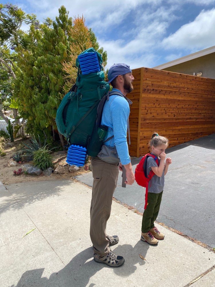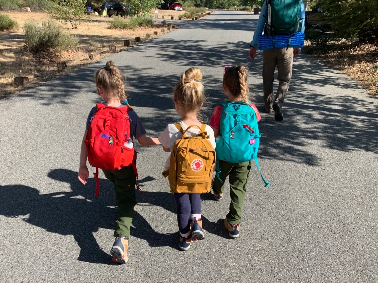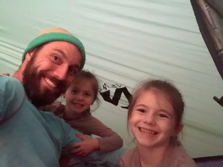 The hardest part was strategically packing because I had to carry almost all the gear. The girls each had a small backpack with a stuffed animal, winter cap, and water bottle, while I carried the tent, sleeping bags, jackets, and food. We tried to streamline as much as possible and went without a stove and bought burritos on the way for dinner and the following breakfast.