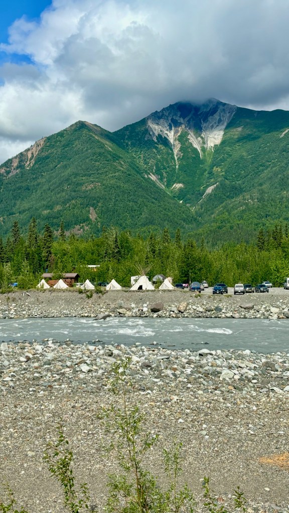 Our final day in Wrangell consisted of breakfast and a polar plunge in a glacier-fed lake, which was the coldest water I’ve ever been in. It left my toes numb for a few hours. As we were driving out of McCarthy Road, so many cars and trucks were flying to get into camp so they could START their long weekend.