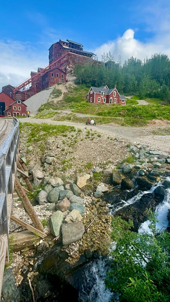 We grabbed a nice spot , backed in the RV, and started exploring the campground. The towns of McCarthy and Kennecott are former mining towns that the NPS has slowly purchased. Some parts of the towns are still privately owned, but its got a real interesting vibe. There were a few restaurants, a nice lodge, outdoor guide shop, and a small museum.