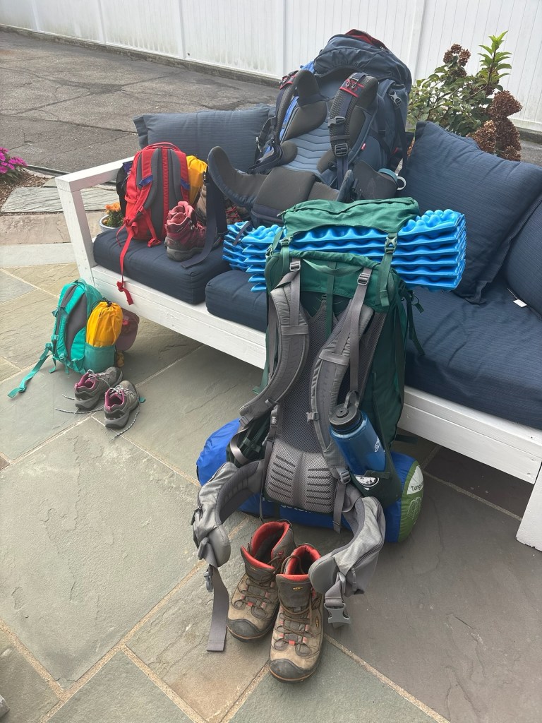 Overall, I estimate the pack weight around 45 pounds for me and in the 30s for Mary. The kids each had under 10 pounds, which was significantly lighter than their backpacks for school. A benefit of backpacking is that the food weight decreases over time, so we were able to slowly lessen our load as we worked through all of our planned meals. Much of what we ate was premade dehydrated meals, oatmeal, protein bars, hard salami, and other good snacks.