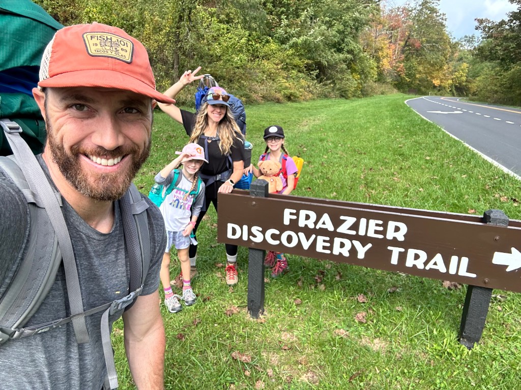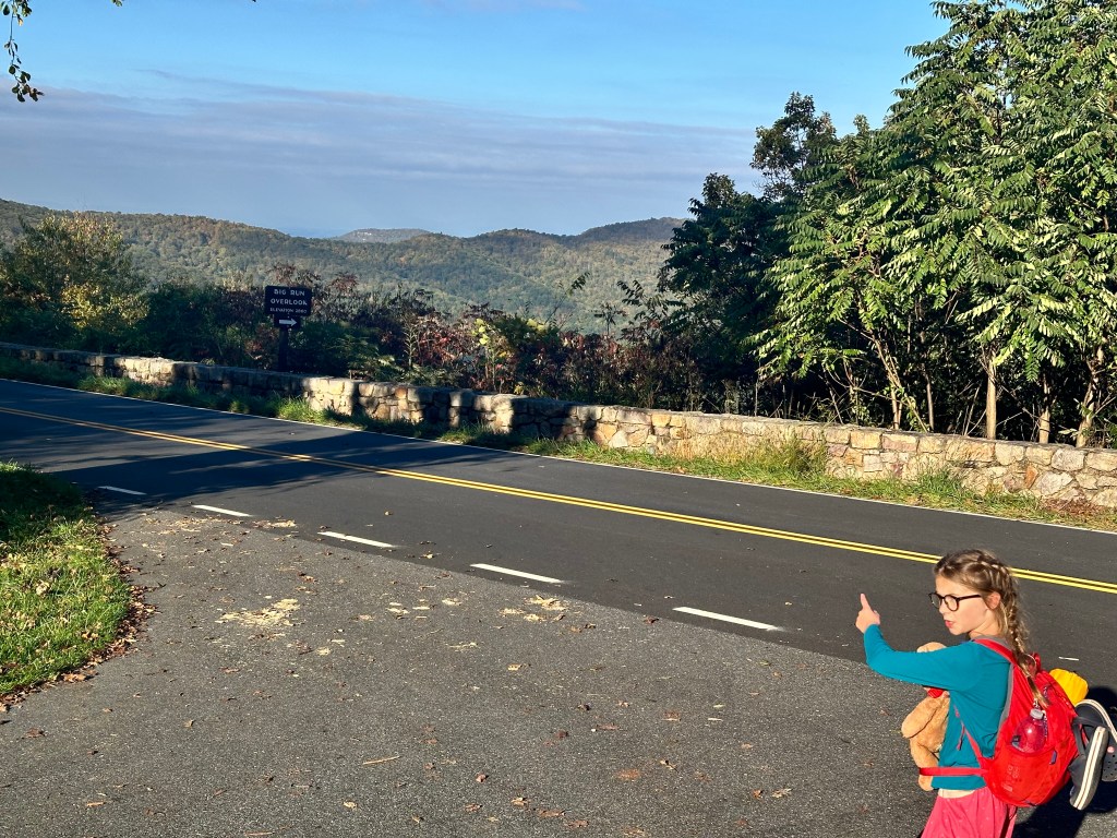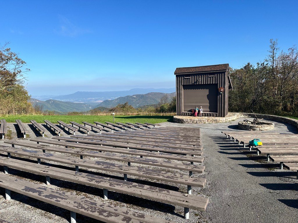 Day 3 had us eat, break down camp, and hike the final 4 miles to the parking lot. We got up to the highest elevation for the day and then enjoyed a few flat miles to the car weaving through some high grasses, brush and trees. Mary walked right past a deer and didn’t even notice it. The girls were in shock that they were within ten feet of it. We kept moving, but it was a reminder of how close animals can be without us knowing. As we hit the final stretch, we came up to the Loft Mountain Campground, which has one of the best amphitheaters we’ve ever seen. The views overlooking the mountains and valley were incredible. They likely have some incredible night sky viewing parties there.