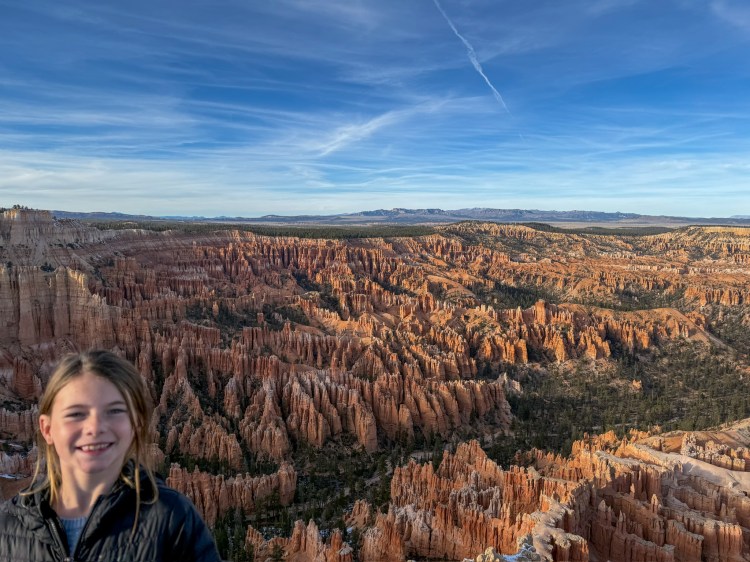 Once we got into Zion, the big focus was hiking the Fairyland Loop trail, an eight miler that is a Top 100 Hike in Backpacker The National Parks Coast to Coast Top 100 Hikes book. Looking back on all the hikes that we’ve done over the past nine years with the girls, this is one of the best hikes we’ve ever done. It was a relatively quiet hike- maybe we saw 15 people in total over the 8+ miles. We got to experience the hoodoos, the snowy peaks, and the solitude we are always looking for on these trips.